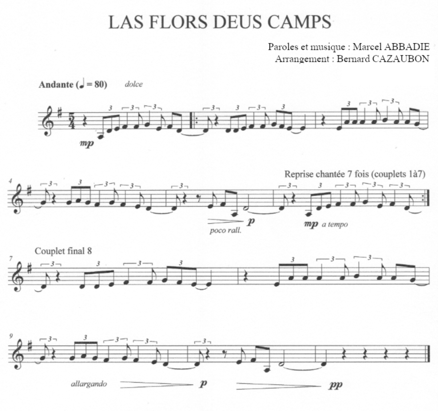 Las flors deus camps est un poème de Marcel ABBADIE, écrivain français/occitan, peintre, sculpteur, illustrateur. Le texte écrit en béarnais a été mis en musique par l’auteur. * Il chante le vautour percnoptère, la Maria Blanca, qui survole sans frontière les trois vallées d’Ossau, Aspe et Baretous. (cf. le site de marcel Abbadie.)